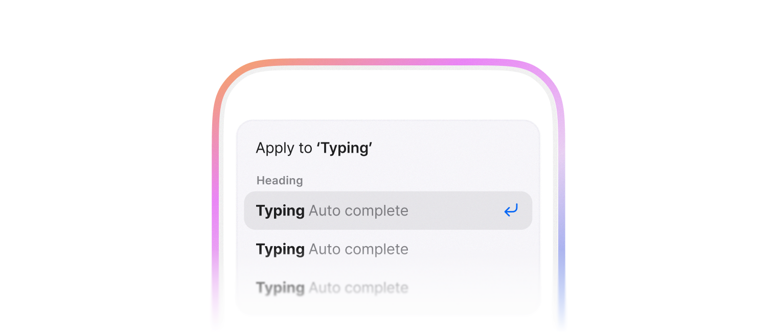 사용자가 텍스트를 입력할 때 실시간으로 관련된 옵션을 제안하여 빠르고 정확한 입력을 돕는 요소입니다. 텍스트 입력 필드와 Menu가 결합된 형태로, 입력 오류를 방지하며 사용자가 가능한 옵션을 탐색할 수 있도록 지원합니다.